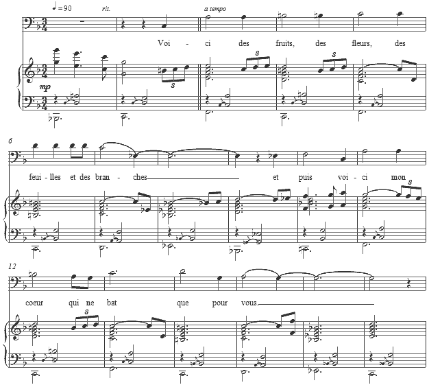 This text has been set many times, notably by Debussy, Fauré and Hahn, and José mentioned it as a favorite text of his. Included in Verlaine's Romances sand Paroles, published in 1872, this is a gentle expression of affection of the man for a woman, as it sketches one small moment in time -- the arrival of the suitor and his wish to "repose" beside her. It is not a text filled with overt sexual tension, so much as with refined tenderness.