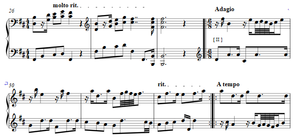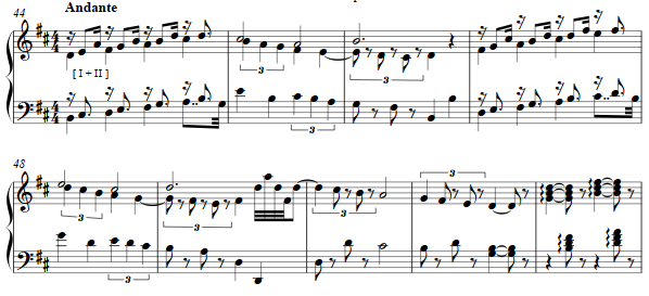 Again scales form this movement as in the previous, now beginning in the relative major, rising gestures, then moving to the relative minor in a light-hearted fashion.
