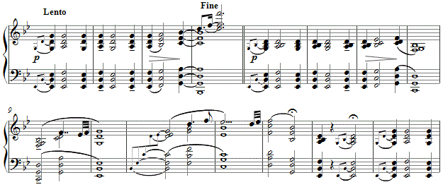 This one-page work is marked lento, with a duration of about 3 ½ minutes. Beginning and lingering on the subdominant is among the structural foundations of the work.
