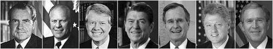 U.S. Presidents Richard Nixon, Gerald Ford, Jimmy Carter, Ronald Reagan, George H. W. Bush, Bill Clinton, and George W. Bush